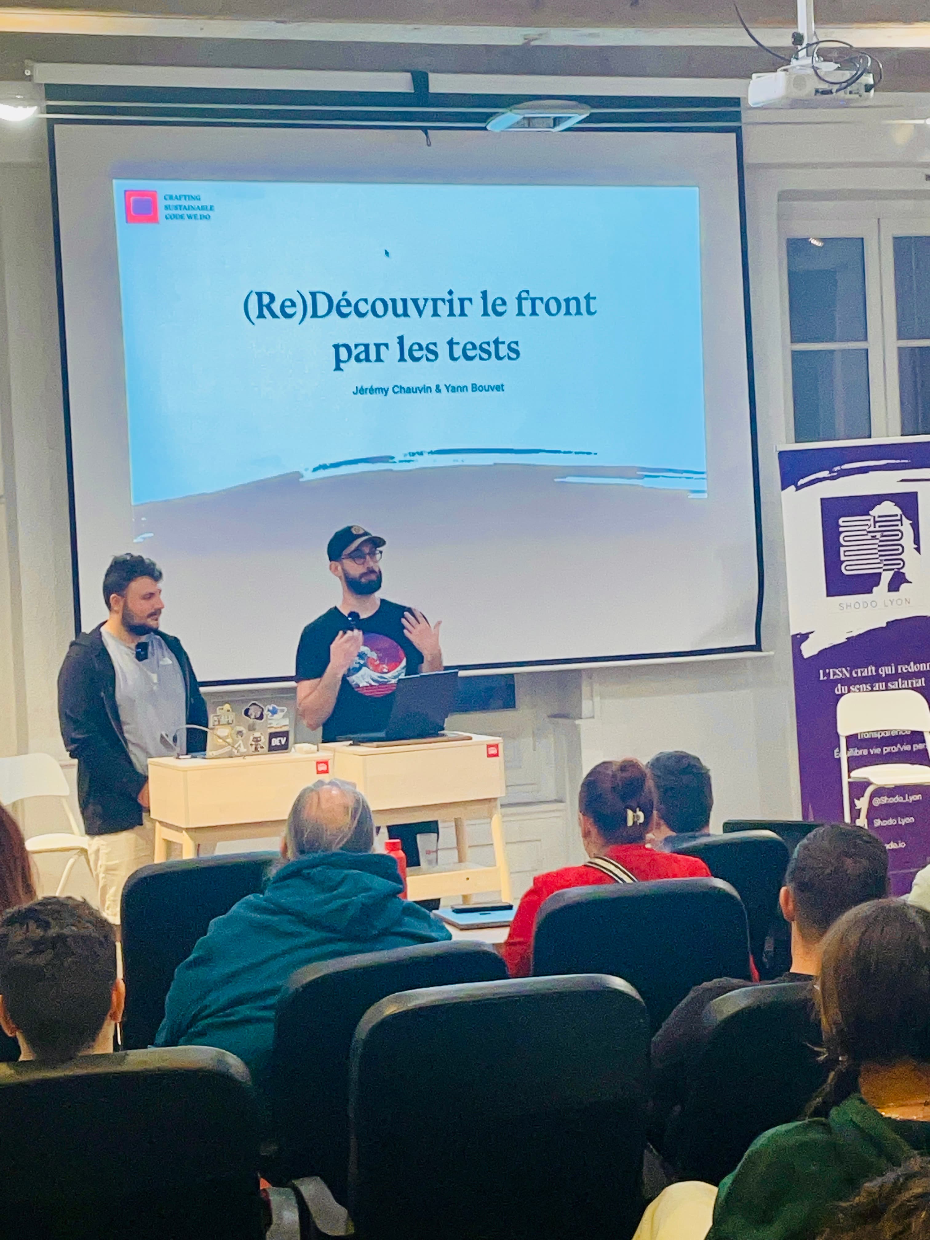 📣 Talk 2 : (Re)Découvrir le front par les tests On a longtemps été des développeurs fullstack qui ne faisait que du back (et qui détestait le CSS). Par cette méconnaissance du front, on a pu créer des soupes de div pour essayer de placer correctement un élément, ne pas écrire de tests unitaires et préférer des tests e2e lents (et flaky). Si vous êtes dans ce cas, le front devient vite une application sur laquelle on redoute d’intervenir. Le code est de plus en plus compliqué à maintenir et peut devenir un goulot d’étranglement pour la livraison de valeur. Dans nos expériences récentes, nous nous sommes réintéressés au front en y appliquant les mêmes réflexions qu’au back (comment bien tester, comment faciliter les développements). Nous vous dévoilerons lors d’un live-coding sur un front en React, comment utiliser correctement les différents niveaux de test, tester unitairement ses composants et supprimer les freins à l’écriture des tests.
